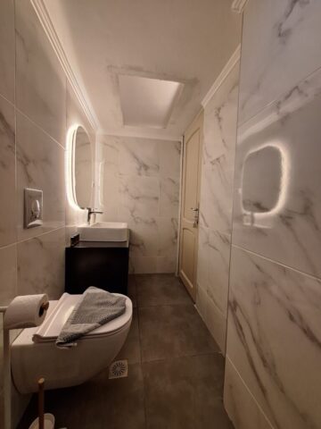 Στο διαμέρισμα θα βρείτε δύο σύγχρονα μπάνια με ντους και προϊόντα περιποίησης. Η πλήρως εξοπλισμένη κουζίνα περιλαμβάνει μηχανή espresso, μηχανή φίλτρου καφέ, ηλεκτρικό βραστήρα και ψυγείο. Χαλαρώστε στο άνετο σαλόνι με τζάκι, τηλεόραση επίπεδης οθόνης 55" και άνετο καναπέ-κρεβάτι. Βγαίνοντας έξω στις δύο ιδιωτικές βεράντες θα μπορείτε να απολαύσετε εκπληκτική θέα στη θάλασσα.